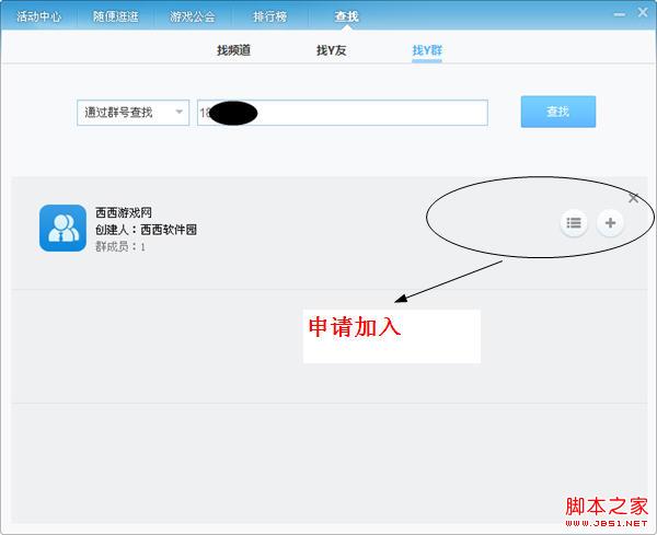 彈出一個界面,大家輸入要加入的群號,點擊查找即可!