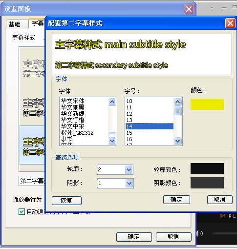 在設置面板里,只能看到這幾種字幕式樣,一般的用戶可能認為,只能從上面選擇,其實不然,可以通過“雙擊”上面字幕式樣,然后進去更改。