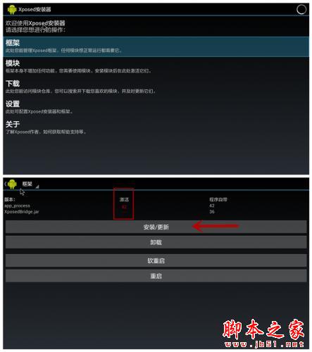 框架激活后,先不要重啟,返回到Xposed安裝器的首界面,選擇“模塊”,激活“應(yīng)用設(shè)置”。