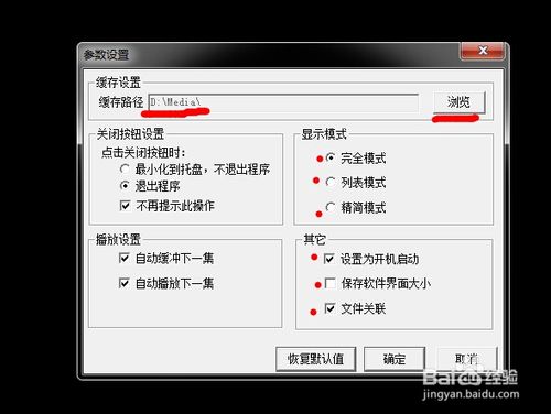 關于播放器的設置,你可以點擊右側按鈕(如圖)。你可以選擇各種設置,緩存地址、開機自動運行等。
