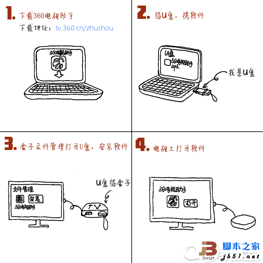 推薦方法1:用U盤給盒子安裝360電視助手——海量免費(fèi)軟件,玩轉(zhuǎn)電視盒子。