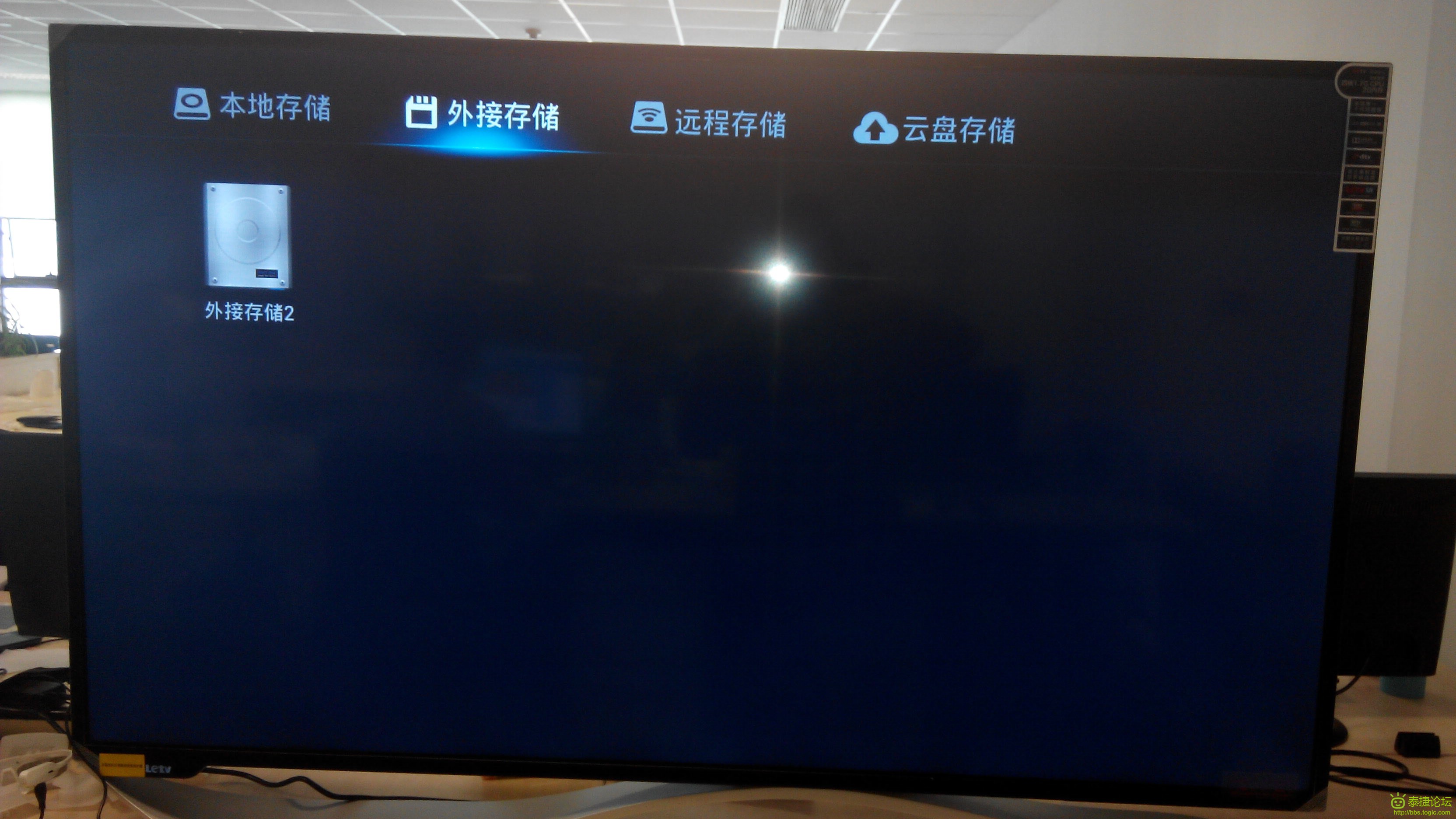 3.遙控器"確定"鍵打開"文件管理",再找到"外接存儲",然后遙控器"確定"鍵打開,