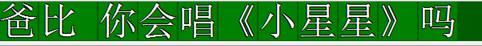 接下來,繼續按右鍵,等到多媒體播放器中的“比”快要變顏色而又未變顏色的時候,再按小鍵盤上的5或空格。這時工具欄上的“爸比”都變了顏色。以次類推,當“多媒體播放器”的“爸比 你會唱《小星星》嗎”變成藍色的時候,工具欄的“爸比你會唱《小星星》嗎”變了顏色。