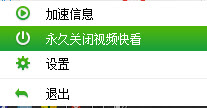 2.小編右鍵了圖標(biāo),彈出四個選項(xiàng)。依次是:加速信息、永久關(guān)閉視頻快看、設(shè)置和退出。