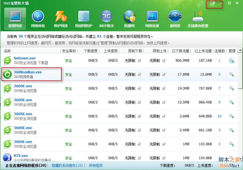 b.接著就是在“已添加的功能”中打開流量防火 墻,這個時候我們看到流量防火墻中有一個360kuaikan.exe這個就是視頻快看哦!
