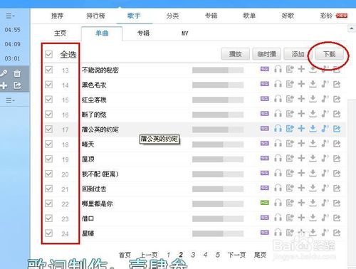 2、打開酷狗軟件,沒有也可以在網(wǎng)上下載安裝,如圖您可以使用搜索功能找到您需要的歌曲,也可以選擇某個歌手的歌曲下載。