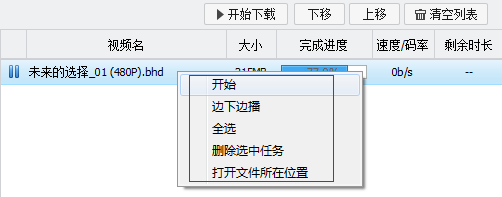 也可以在該界面的下載任務處點擊右鍵,進行相應操作。