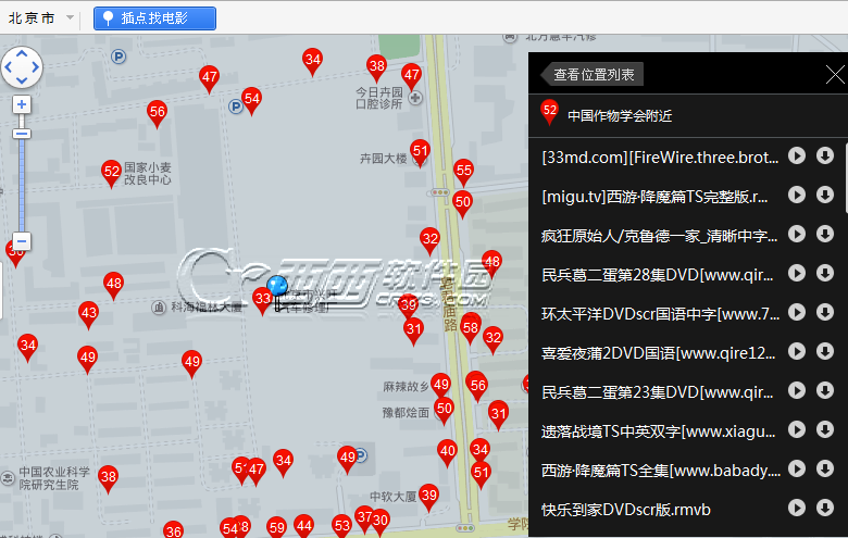 首先選擇一個城市,然后點擊插點找電影在選擇的城市地圖上標記一個點,我們就可以看到這個城市各個區用戶正在觀看的視頻數量了。