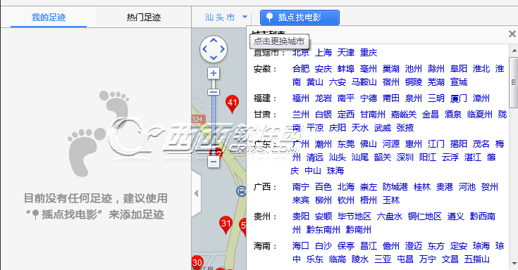 5、介紹完熱門足跡我們再看看我的足跡,這個選項可以自行選擇地區查看當前地區用戶正在觀看的視頻。
