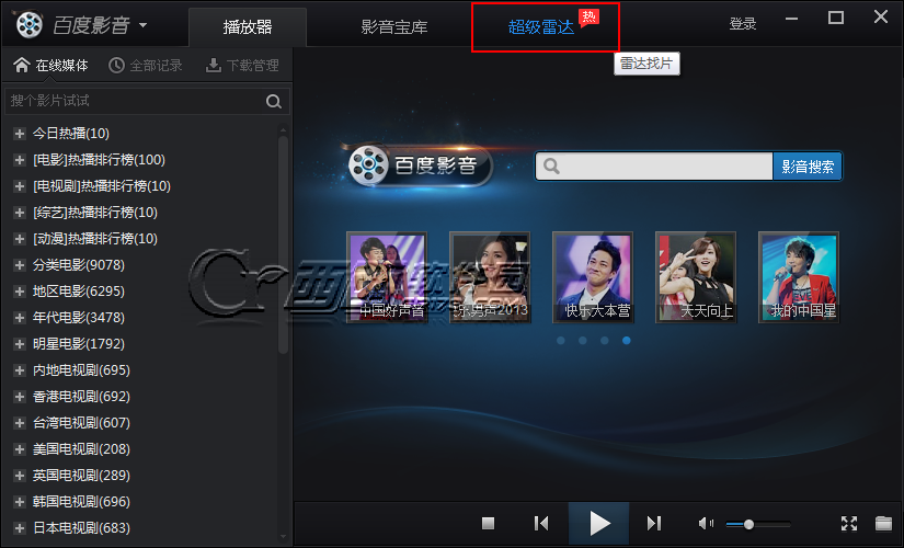 2、安裝完畢后打開百度影音點擊超級雷達進入該功能界面。