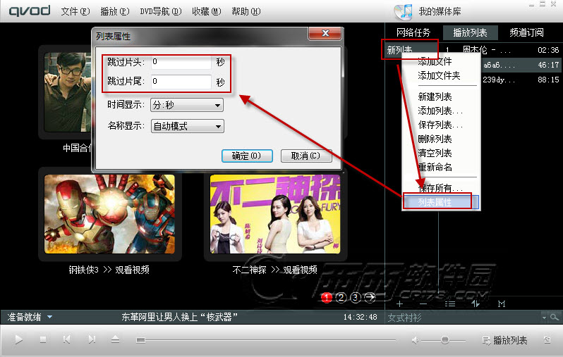 在我們使用此方法看電視劇時,還可以右鍵單擊新列表,在列表屬性中設置跳過片頭和片尾。