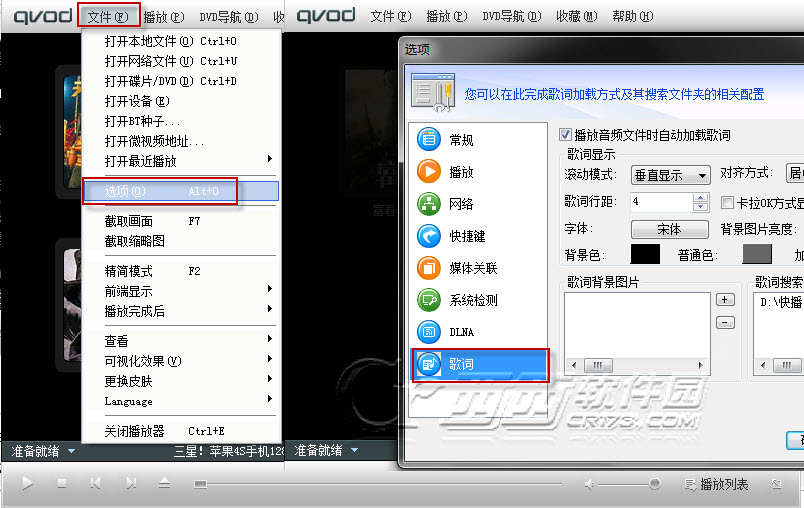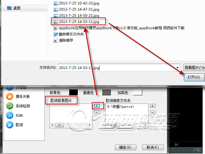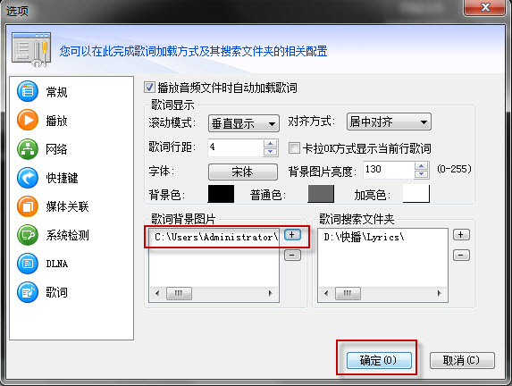 第三步:我們可以看到在歌詞選項中以一個背景圖片選項,點擊+按鈕,設置自己喜歡的背景圖片。