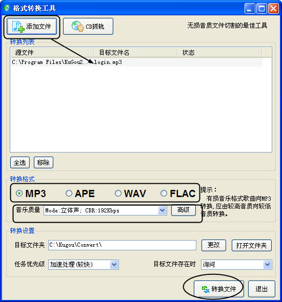 其實酷狗自帶的轉換工具就能輕松搞定!