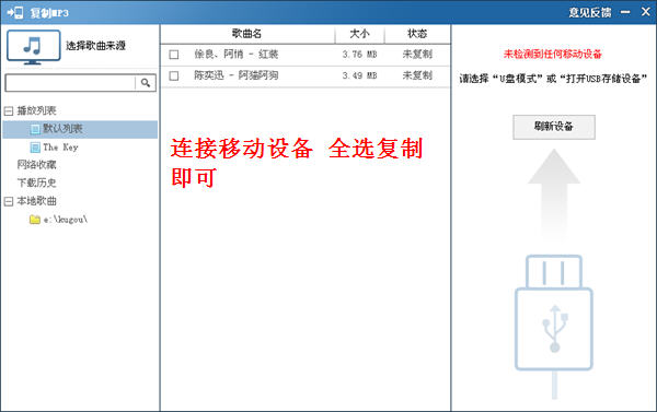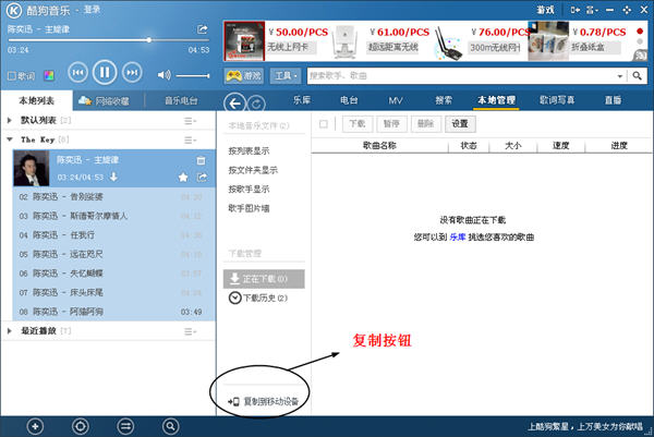 酷狗還有一個非常好用的功能,就是能一鍵復制到移動設備中去