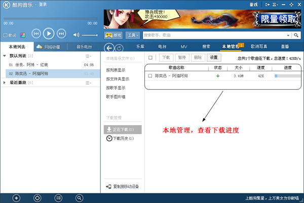 本地管理,能夠查看下載進度