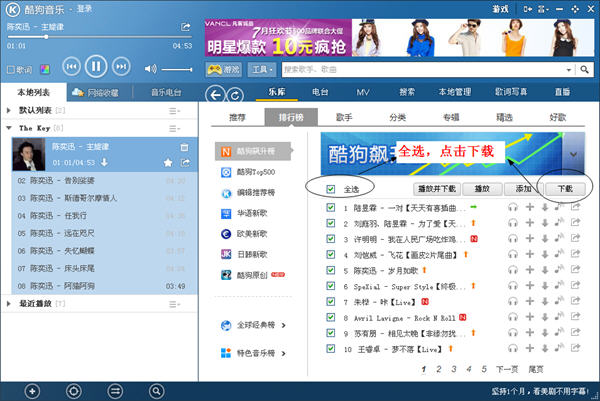 如果一首一首的下是非常麻煩的,酷狗支持歌曲批量下載,怎么操作呢?