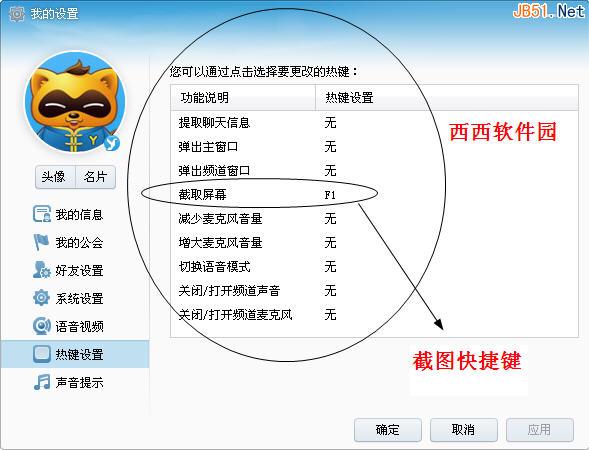 找到熱鍵設置,如果大家看到了,點擊熱鍵設置,可以在鍵盤上隨意輸入您想要的快捷鍵即可,點擊應用。看下圖