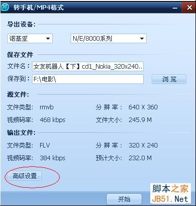C.點擊高級設(shè)置,可選擇文件類型、分辨率、視頻碼率