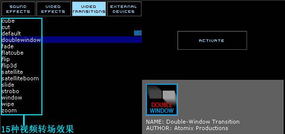 VDJ工提供了15種視頻轉(zhuǎn)場效果,具體效果請大家自己嘗試。