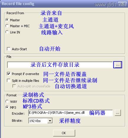 下面我們講講VDJ的錄音功能,VDJ提供了WAV和MP3兩種錄音格式,而且最大支持320K的采樣精度,音質(zhì)還是相當(dāng)不錯的,贊一記!!