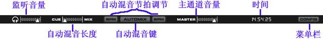 自動混音長度:按下自動混音鍵以后,2個播放器進(jìn)行自動混音的重疊時間,越往右拉重疊時間越長
