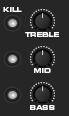 三段EQ控制,從上至下依次為高音、中音、低音,旁邊的KILL燈可直接過濾掉此頻段的信號