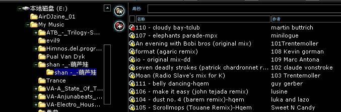 依次顯示的是文件名、作者、節(jié)拍、長度、注釋(其中節(jié)拍和長度需要載入一次才會顯示,注釋需要自己添加)雙擊文件名載入到當(dāng)前選種的播放面板,右鍵可“試聽”和一些其他功能將鼠標(biāo)移動到右邊的PLAYLIST可調(diào)出播放目錄窗口,在那里可以排曲、進(jìn)行自動混音等等
