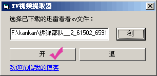 xv視頻提取器點擊瀏覽添加xv文件,(注意:這里操作之前一定要把視頻看完,也就是要緩存完,否則視頻就不完全),如圖: