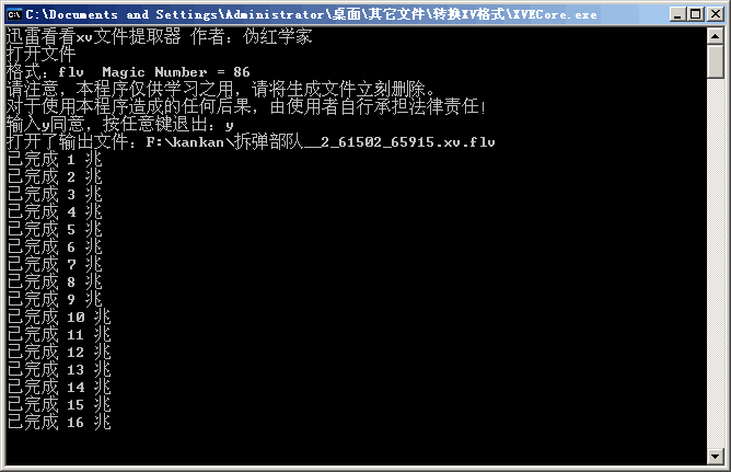 ok,xv視頻提取器開始提取視頻,如圖: