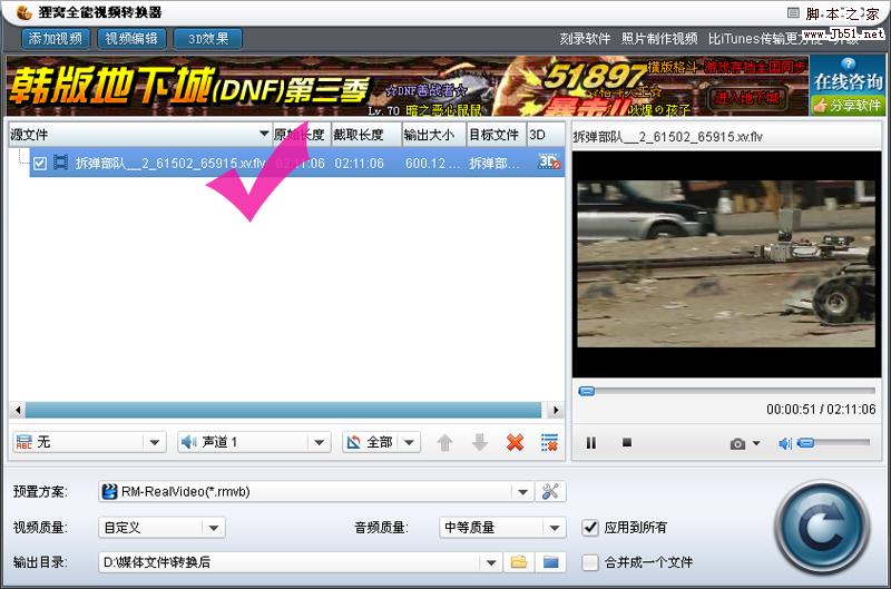 xv文件拆彈部隊__2_61502_65915視頻提取成功, 我們再運行貍窩全能視頻轉換器添加提取的視頻flv格式的,如圖:
