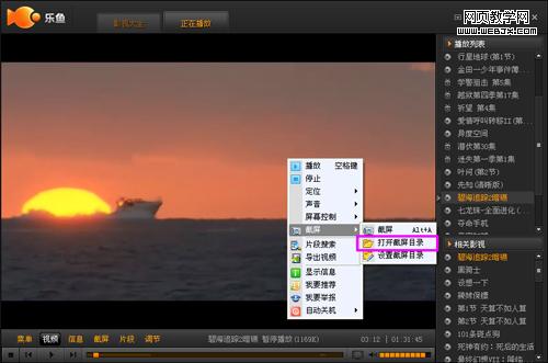 很多網友或出于興趣,或出于娛樂,又或出于工作,會產生截取節目畫面或者圖片的需要,于是乎,截屏工具便應運而生了,目前,網友們經常使用的截屏工具應該是qq或者其他專業的軟件。不可否認,這些截屏工具在截取靜態圖片時確實方便快捷,操作簡便,但截取動態的畫面片段時,卻不是最佳的選擇,比如有些播放軟件不支持這些截屏工具,那么網友截取下來的畫面就是黑屏狀態。為了解決網友這一難題,滿足網友的娛樂亦或工作的需要,樂魚增設了“截屏”功能,樂魚的截屏功能能夠在影片不間斷播放的狀態下幫助網友獲取想要的畫面,在該項功能中,網友可以完成截屏、查看截屏、設置截屏文件保存地址三項操作,具體操作步驟如下:
