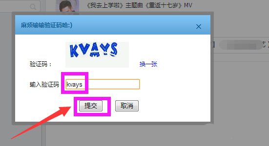 7、此時出現一個輸入驗證碼的窗口,輸入驗證碼后,點擊“提交”。