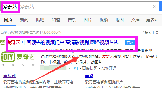 1、百度上搜索“愛奇藝”,點擊搜索出來的第一個愛奇藝官方網站。