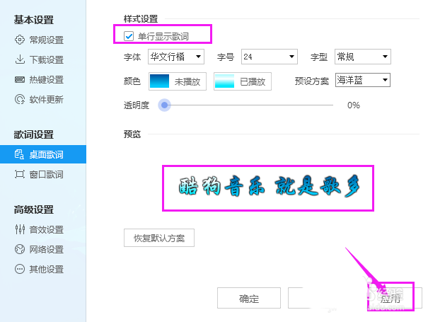 以上就是酷狗音樂設置歌詞單行顯示的教程,希望大家喜歡,請繼續關注武林網。
