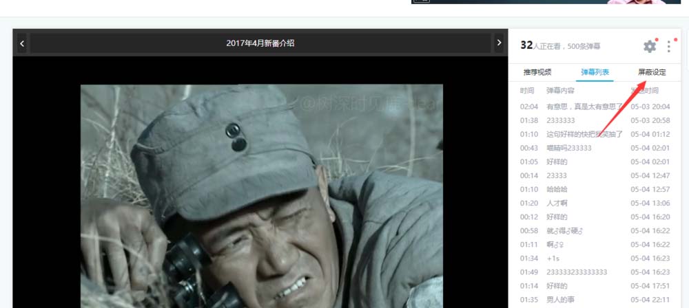 2、打開視頻播放頁面后,我們點擊播放窗口右邊的屏蔽設(shè)定,如圖所示