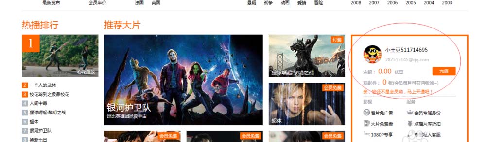 1、登錄您的土豆會員賬號,進入土豆首頁,點擊右上角的會員
