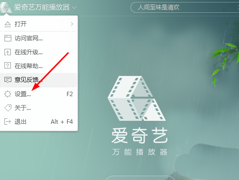 2、然后打開愛奇藝萬能播放器軟件的界面,點擊個人中心,選擇設置,如圖所示
