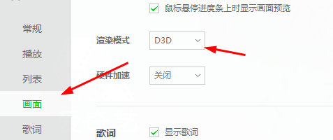 3、接著進入設置的界面,點擊左側的畫面,在右側可以看到渲染模式,在這里可以選擇默認的D3D,如圖所示