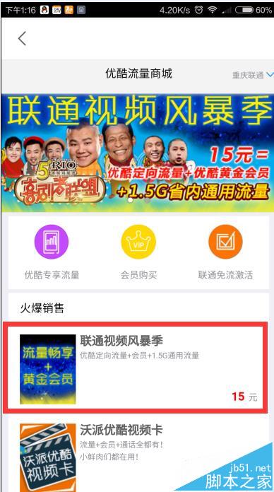 優酷在今年暑假推出了一個15元聯通套餐,即15元包(全省流量半年包1.5G+優酷30天定向流量+優酷會員30天),如果是原價的話需要六七十元。很多小伙伴都知道,但是很多人反映,定向流量不能用。那小編今天告訴大家最正確的步驟。