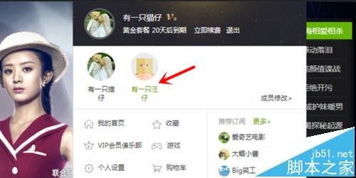 6、愛奇藝家庭成員怎么用?把主賬號的用戶名和密碼告訴需要登錄的人。然后讓對方登錄,登錄后把鼠標(biāo)放在頭像上,會出現(xiàn)子賬號的名稱,點擊后切換。