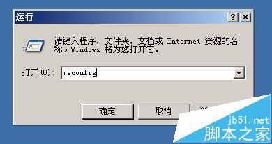 4、這時會打開運行對話框,在對話框中輸入命令msconfig,接著點擊確定按鈕