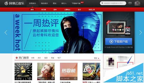 1、打開網頁版網易云音樂,點擊右側中間“簽到”可得2積分。