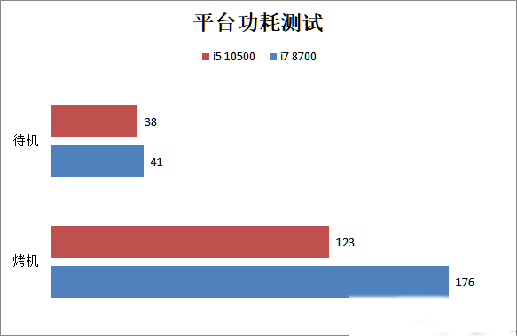 溫度和功耗方面,i5 10500的表現非常好,尤其是在烤機時,i5 10500的烤機溫度只有58度,功耗也只有123W。而i7 8700的烤機溫度為73度,功耗也來到了176W。因此在溫度、功耗方面i5 10500完勝i7 8700。