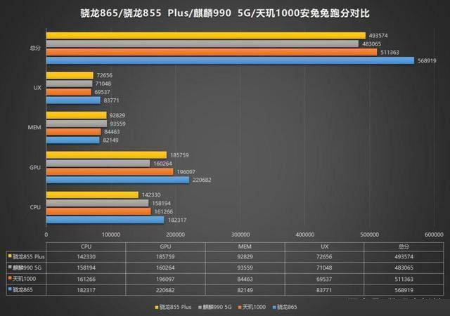 而麒麟990 5G在GPU跑分上的表現與驍龍865相比,差距更是明顯,其跑分僅為16萬分,而驍龍865則達到22萬分之高。麒麟990 5G首次采用16核Mali-G76的GPU構架,同時,還加入了Kirin Gaming+2.0技術與GPU Turbo 3.0技術,力求使性能得到更高的提升。但驍龍865所采用的Adreno 650 GPU構架也不容小覷,實力碾壓華為。
