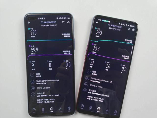 在實際場景測試當中,拋出運營商的套餐流量限制,并且選擇在同一地點,同一運營商使用熱門測速軟件SpeedTest進行5G網絡上傳、下載測試。從測試結果上來看,榮耀V30 Pro的上傳速率為59.9Mbps,下載速率為290Mbps;OPPO Reno3的上傳速率為73.4Mbps,下載速率為293Mbps。總的來說,下載速率方面較為接近,但在5G上傳網速方面OPPO Reno3有較為領先的優勢。