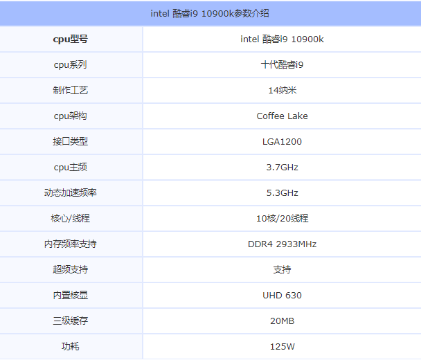 一、首先我們還是來(lái)介紹一下i9 10900k的基本參數(shù)