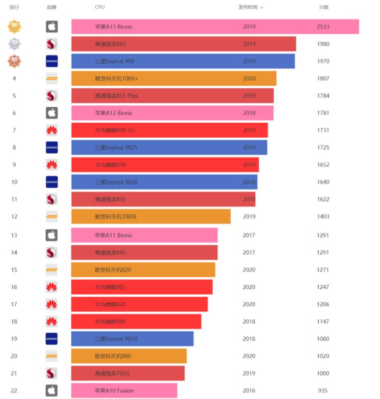 即將發布的Redmi 10X搭載的天璣820,它的綜合得分為1271分,排在第15名,基本上和驍龍845處于同一水平,超過麒麟985、麒麟820。至于天璣800芯片,得分為1020分,超過驍龍765G,實力基本上差不多。
