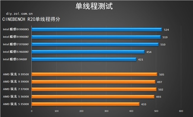 在核心夠用的情況下,單核心性能卻強游戲幀數越高,所以這個測試能清楚的反應這些處理器的游戲表現。在處理器的單核心性能上,英特爾處理器依舊市場上占據了主動地位,這方面頻率的影響很大,單核高頻是英特爾處理器的特點,在英特爾工藝確實落后對手的情況下,處理器單核表現依舊能穩贏,確實在設計和研發能力上,英特爾依舊無愧于頂級的半導體大廠。