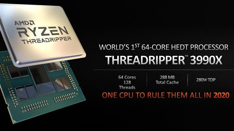而在明年初,我們將看到全球第一款64核心128線程桌面處理器“ThreadRipper 3990X”,與數據中心的霄龍完全持平,總計多達288MB緩存,熱設計功耗依然維持在280W,價格暫未公布。