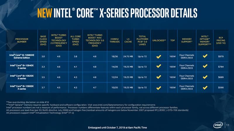 第十代酷睿X處理器一共發(fā)布了4個(gè)型號, 取消了16核心和8核心型號,10核心也從兩款減至一款。